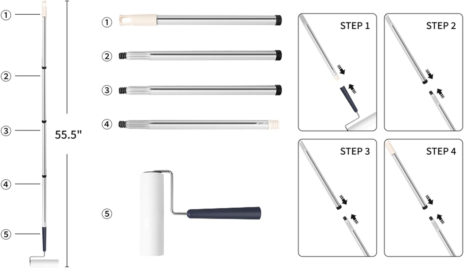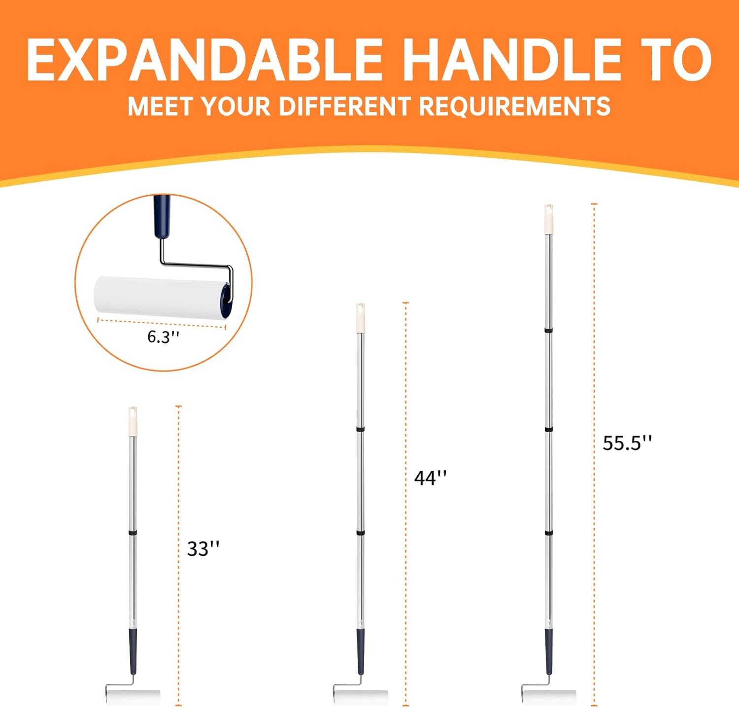 - Max 55ββ Length & 3-in-1 Design: The giant lint roller remover with a total pole length of 55", allows for effortless cleaning without bending over. With a handle connecting rod and 3 interchangeable poles,and a 13.77" replacement length for easy cleaning of difficult-to-reach areas.