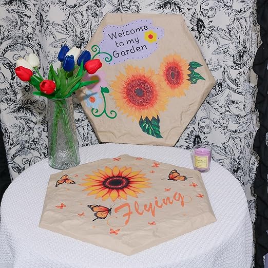 4Pcs Hexagon Sunflower Stepping Stone Outdoor Garden Walkway, Durable Plastic Pavers for Patio, Pathway, and Landscaping, Weatherproof Stepping Stone with Ground Stakes for Easy Installation