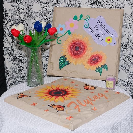 4Pcs Square Sunflower Stepping Stone Outdoor Garden Walkway, Durable Plastic Pavers for Patio, Pathway, and Landscaping, Weatherproof Stepping Stones with Ground Stakes for Easy Installation