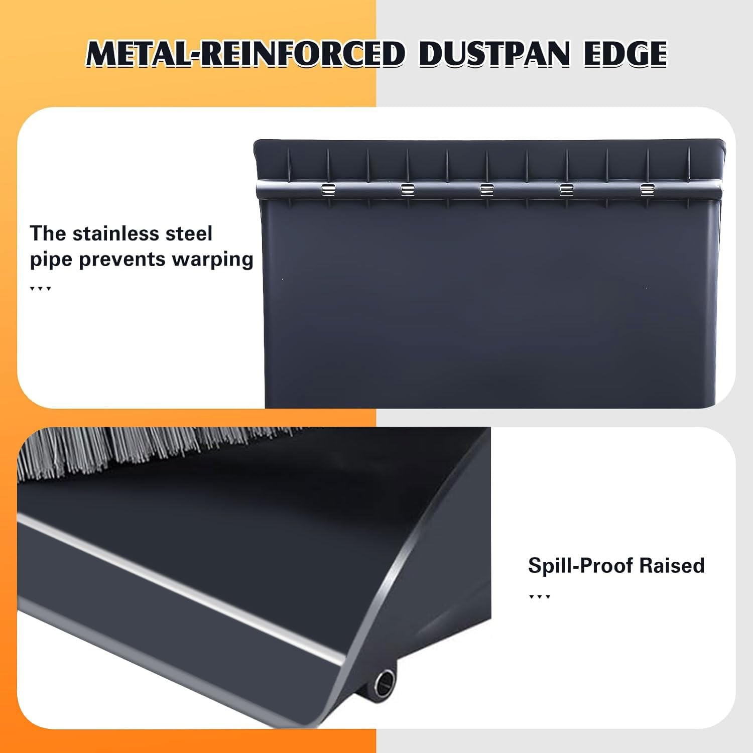 - 【Metal-Reinforced Dustpan Edge】Unique metal tube embedded along the dustpan's back edge - The thickened stainless steel pipe prevents warping for perfectly flat contact with floors,No more dust escapes.The 28cm wide mouth makes this outdoor broom and dustpan set ideal for all cleaning tasks