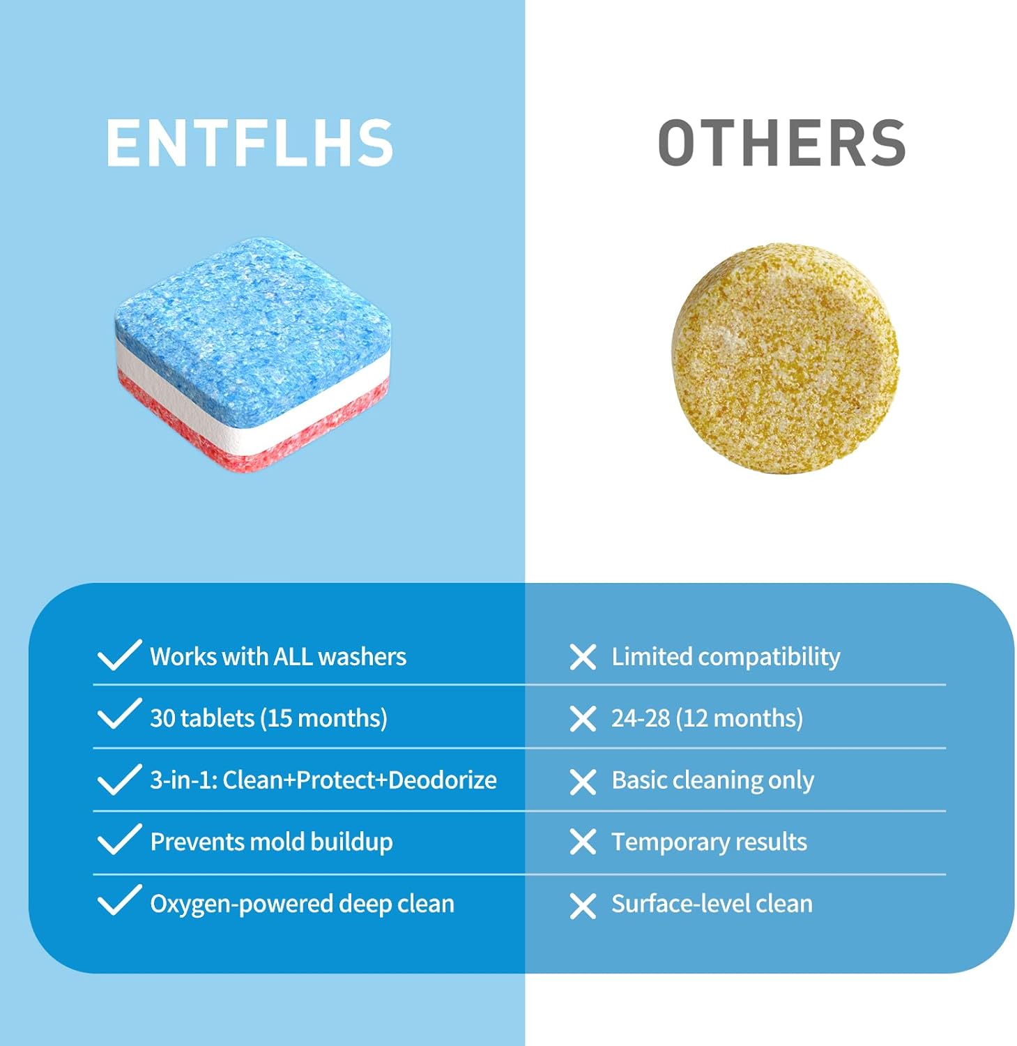 Washing Machine Cleaner Tablets 30 Pack - HE Top Load & Front Load Washer Cleaner, Eco Friendly Septic Safe, 3 Layers Deep Cleaning, Descaler & Deodorizer, 1+ Year Supply (30 Count