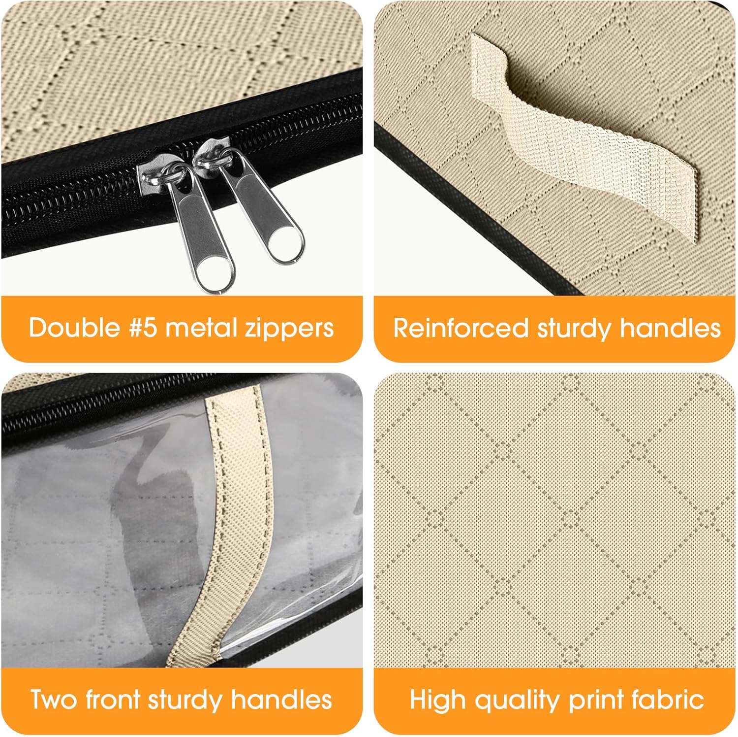 StorageRight Under Bed Storage Bins, 4-Pack 40L Foldable Fabric Storage Bags with Transparent Window, Breathable Organizer for Clothes/Blanket/Comforter/Quilts,Beige