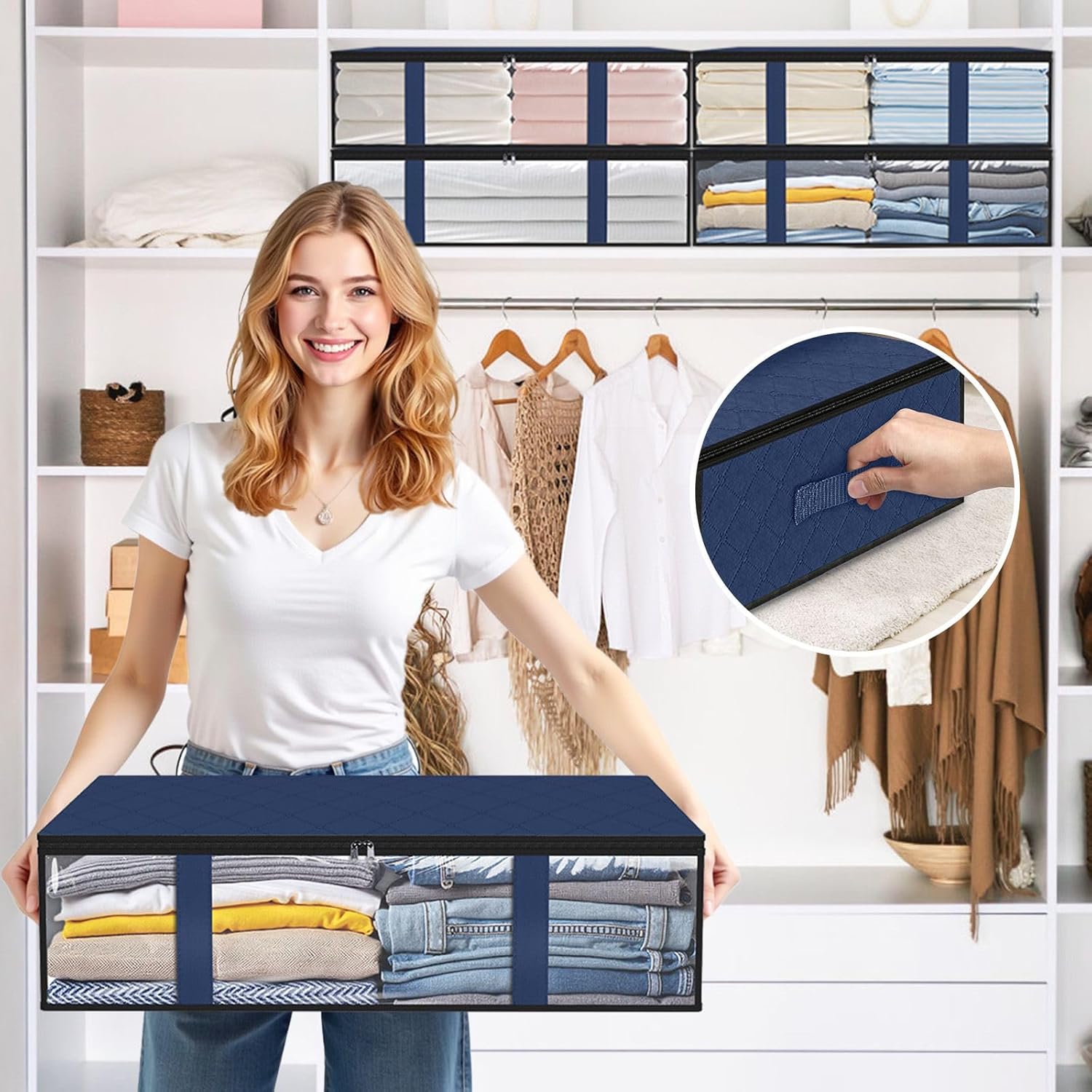 StorageRight Under Bed Storage Bins, 8-Pack 40L Foldable Fabric Storage Bags with Transparent Window, Breathable Organizer for Clothes/Blanket/Comforter/Quilt, Blue