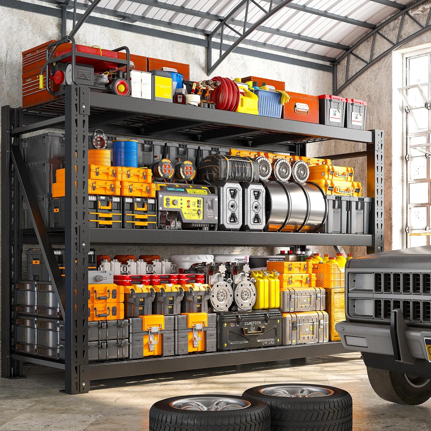 Bepatio 7014LBS Garage Shelving Heavy Duty 67.6W Storage Shelves Adjustable Metal Shelving 3 Tier Utility Shelf for Warehouse Basement Shop, Black 67.6''Wx23.7''Dx66''H, 2PCS