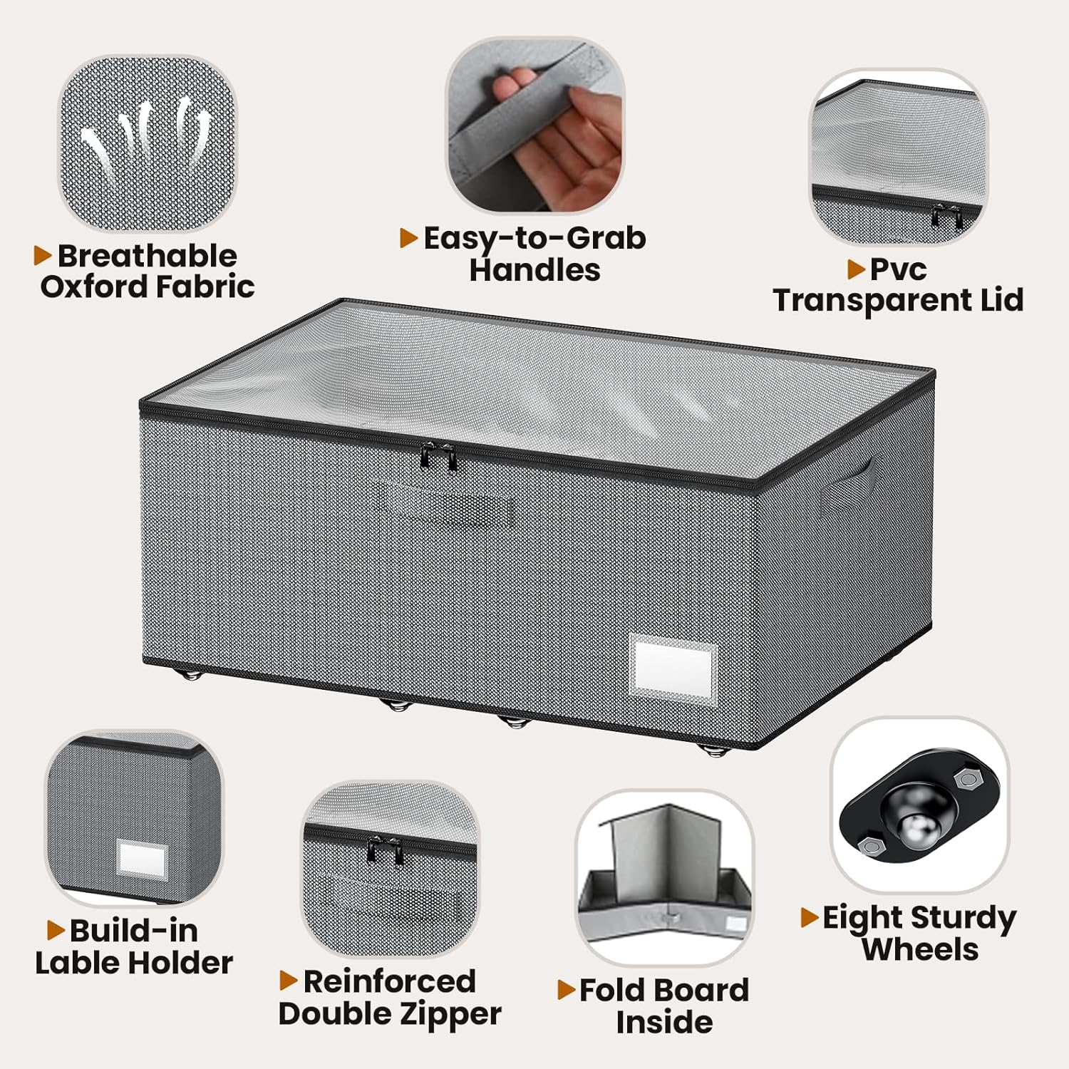 - 【TRANSPARENT LID DESIGN】: The under bed storage with clear lids, this storage solution allows easy identification of contents without opening, reducing clutter and misplaced items, The design keep out moisture, dust, and dirt, maintaining a clean and organized space