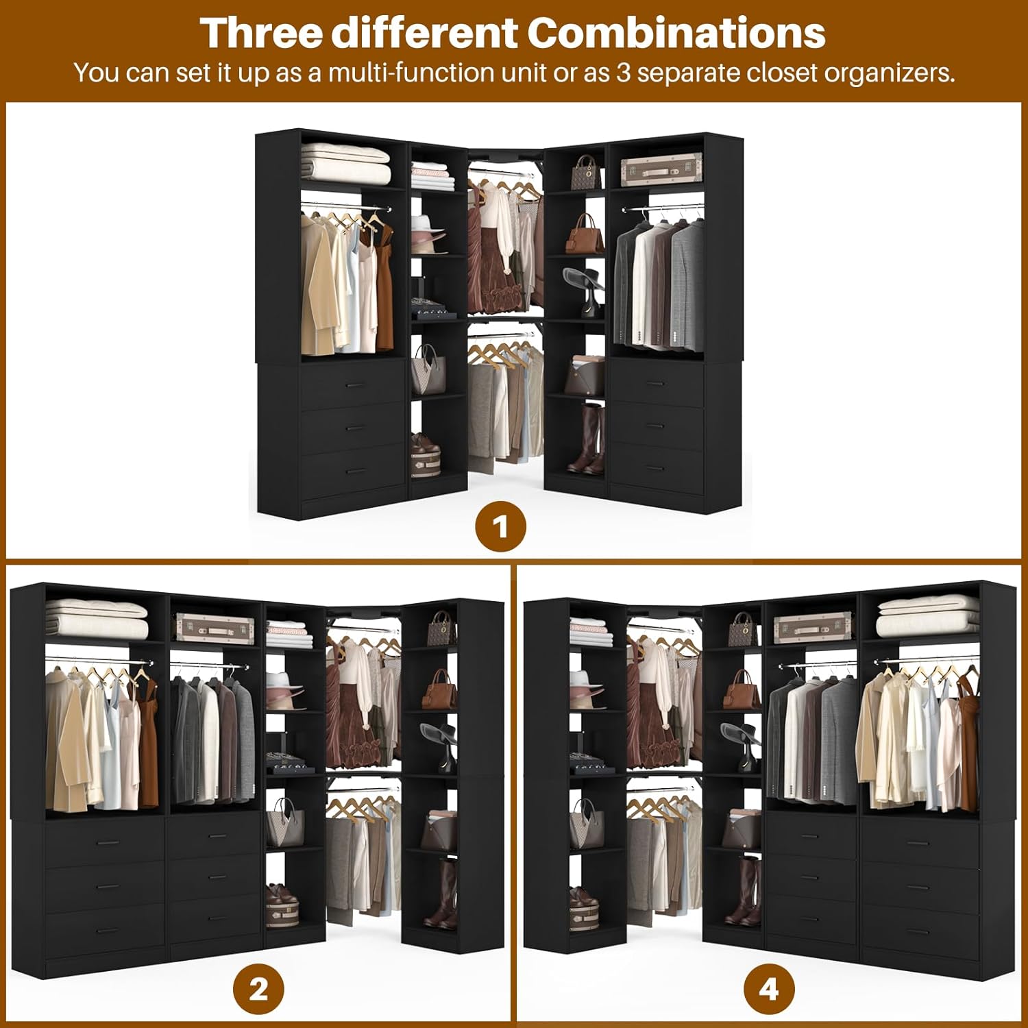 - DIY Customize Your Dream Walk-in Closet: Our closet systems put the design in your hands, allowing you to DIY to your liking. You have the flexibility to mix and match different modules based on room size, personal style and storage requirements to create an dreamful L- or U-shaped walk-in closet.