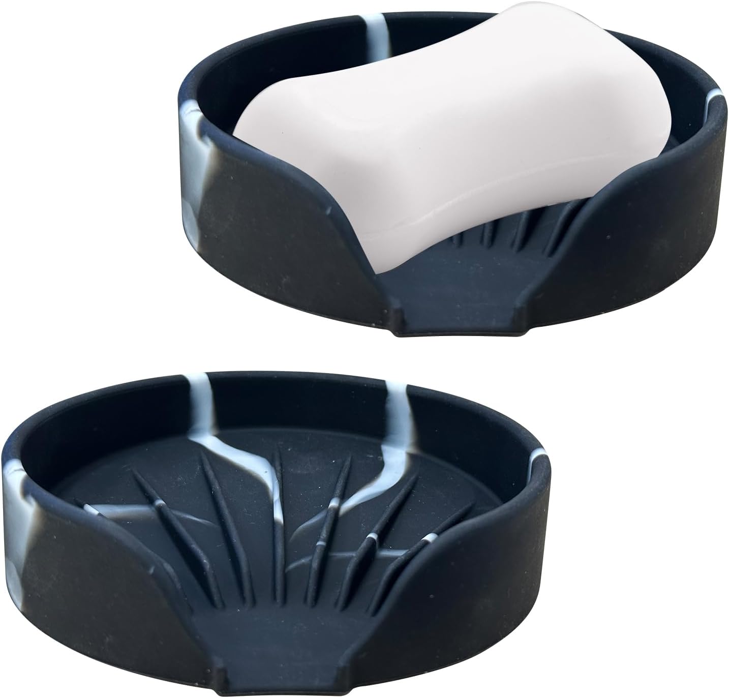 - Self Draining Soap Dish: The silicone shower soap dish is designed with an raised surface and a drain spout. It can automatically drain water into the sink, prevents soap from getting mushy and water from pooling on the countertop, keeping both clean