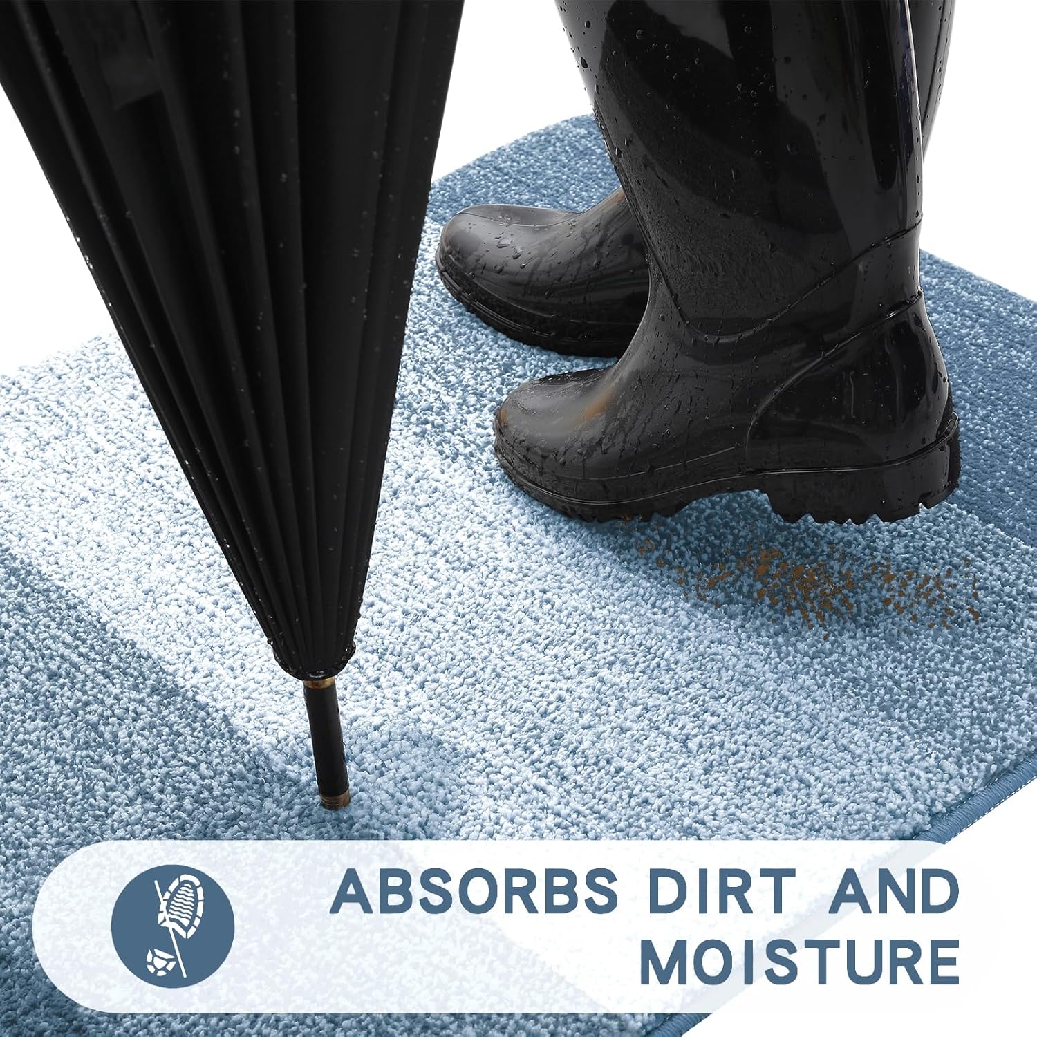 Kitinjoy Indoor Outdoor Door Mat, 32x20 Non-Slip Absorbent Dirt Trapper, Low-Profile Washable Inside Entrance Front Floor Mat, Sturdy Soft Entry Doormats for Entryway, Light Blue