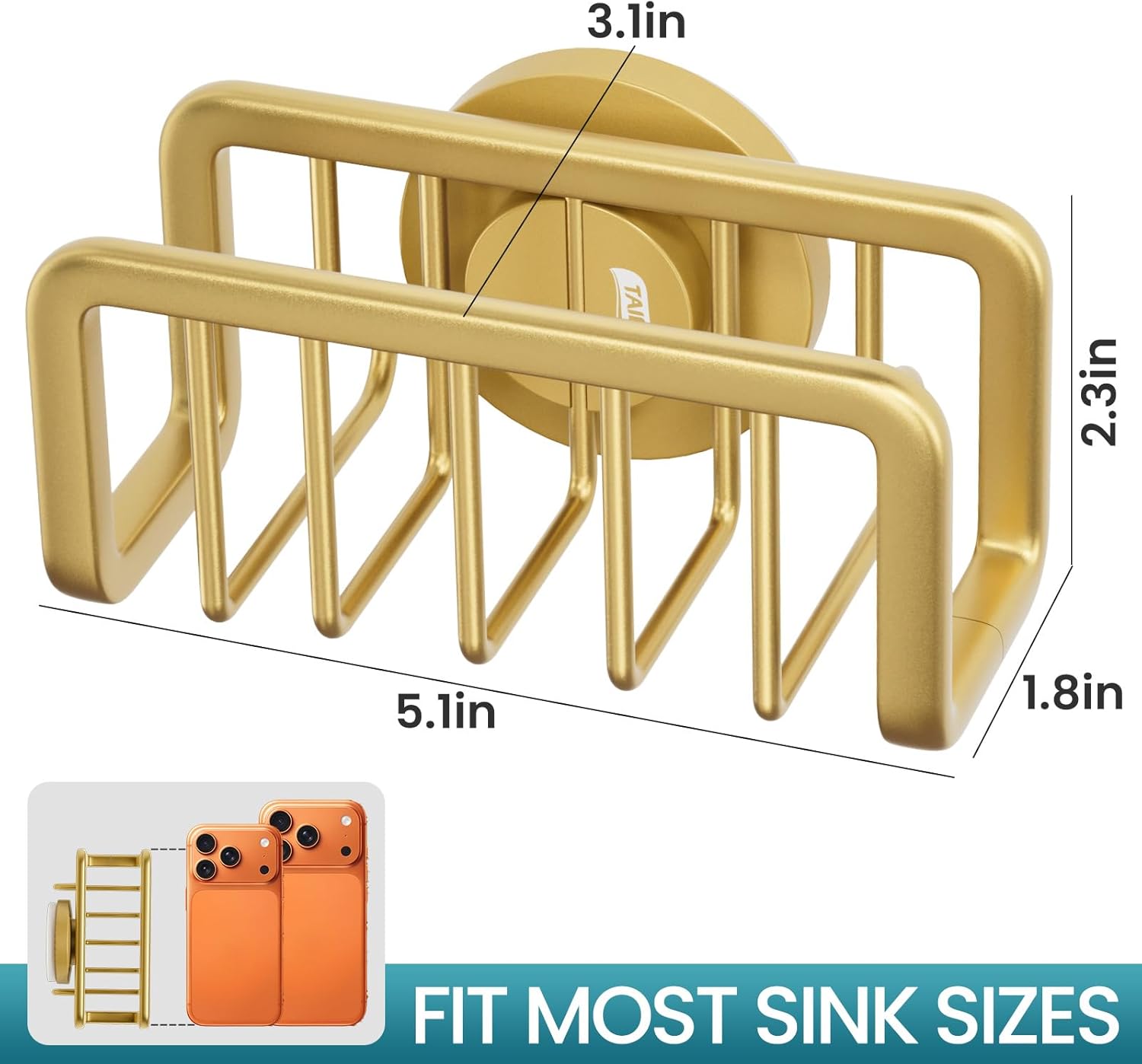 TAILI Sponge Holder for Kitchen Sink with Strong Suction Cup, Rustproof Aluminum Sink Caddy for Sponges, Removable Sponge Holder, Dish Brush for Scraper - Gold