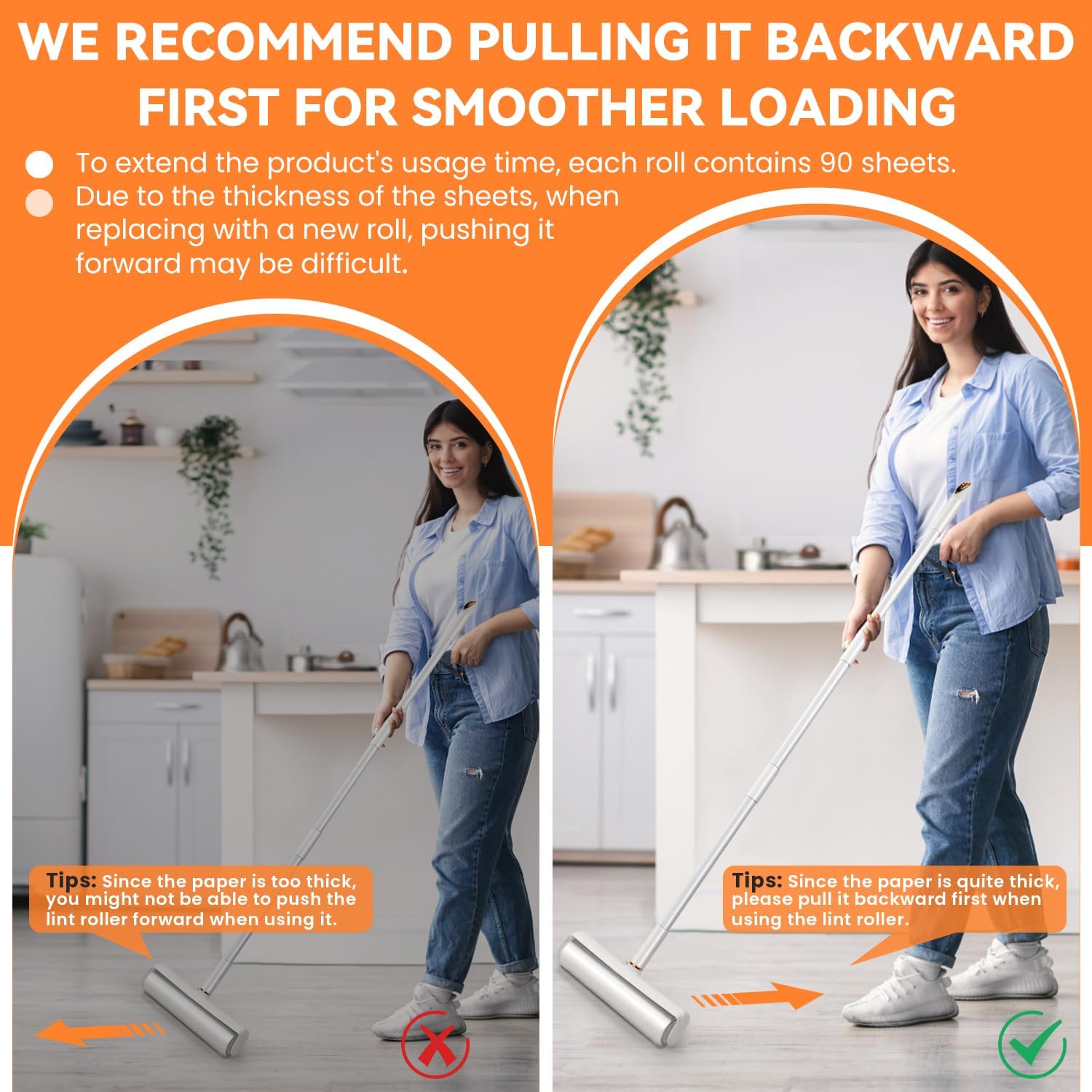 - 9.6-INCH WIDE DESIGN & 540-SHEET VALUE:Maximize cleaning coverage with our 9.6-inch wide adhesive roller. Its substantial width tackles expansive floors, carpets, and furniture effectively. Includes 6 refill rolls offering 540 extra-sticky sheets for extended use. Ideal for busy homes and pet owners managing shedding, this design helps reduce cleaning time. The generous refill quantity provides significant value by minimizing replacements.