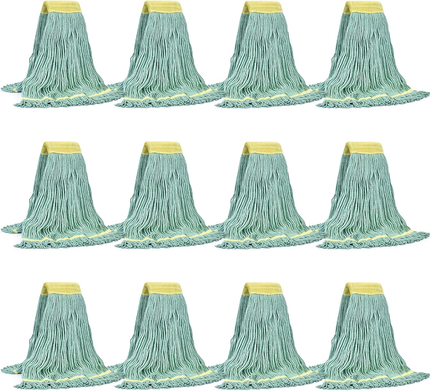 Matthew Cleaning Commercial Mop Head Replacement, 5 Inch Wide Headband, Looped End Cotton Blend String Wet Mops for Floor Cleaning, 18 oz Medium, Case Pack 12 Pcs Green