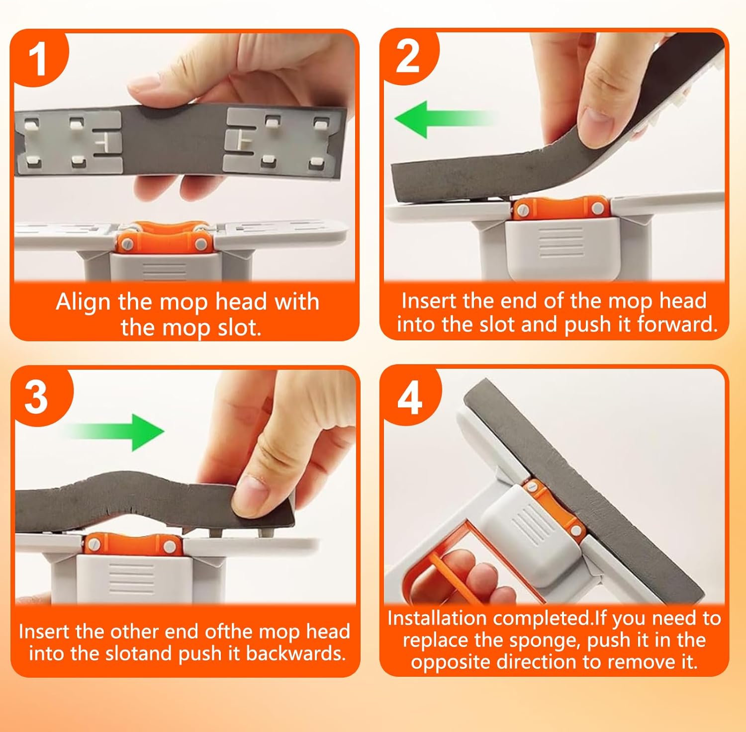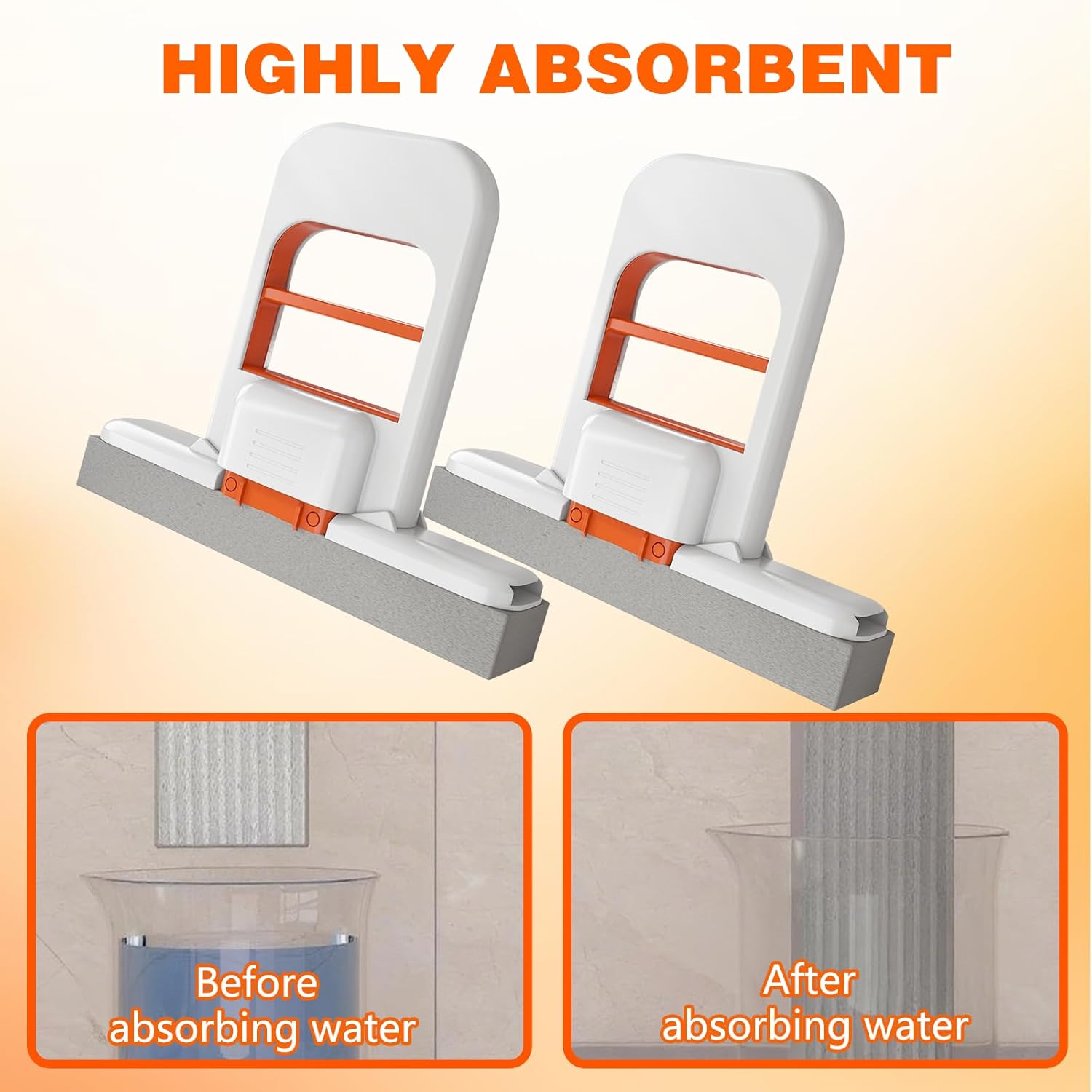 - 【Effortless Squeezing】The sponge mop head absorbs spills instantly, while the one-touch squeeze mechanism lets you wring out water effortlessly—no wet hands or messy drips! Ideal for quick cleanups on floors, countertops, and more