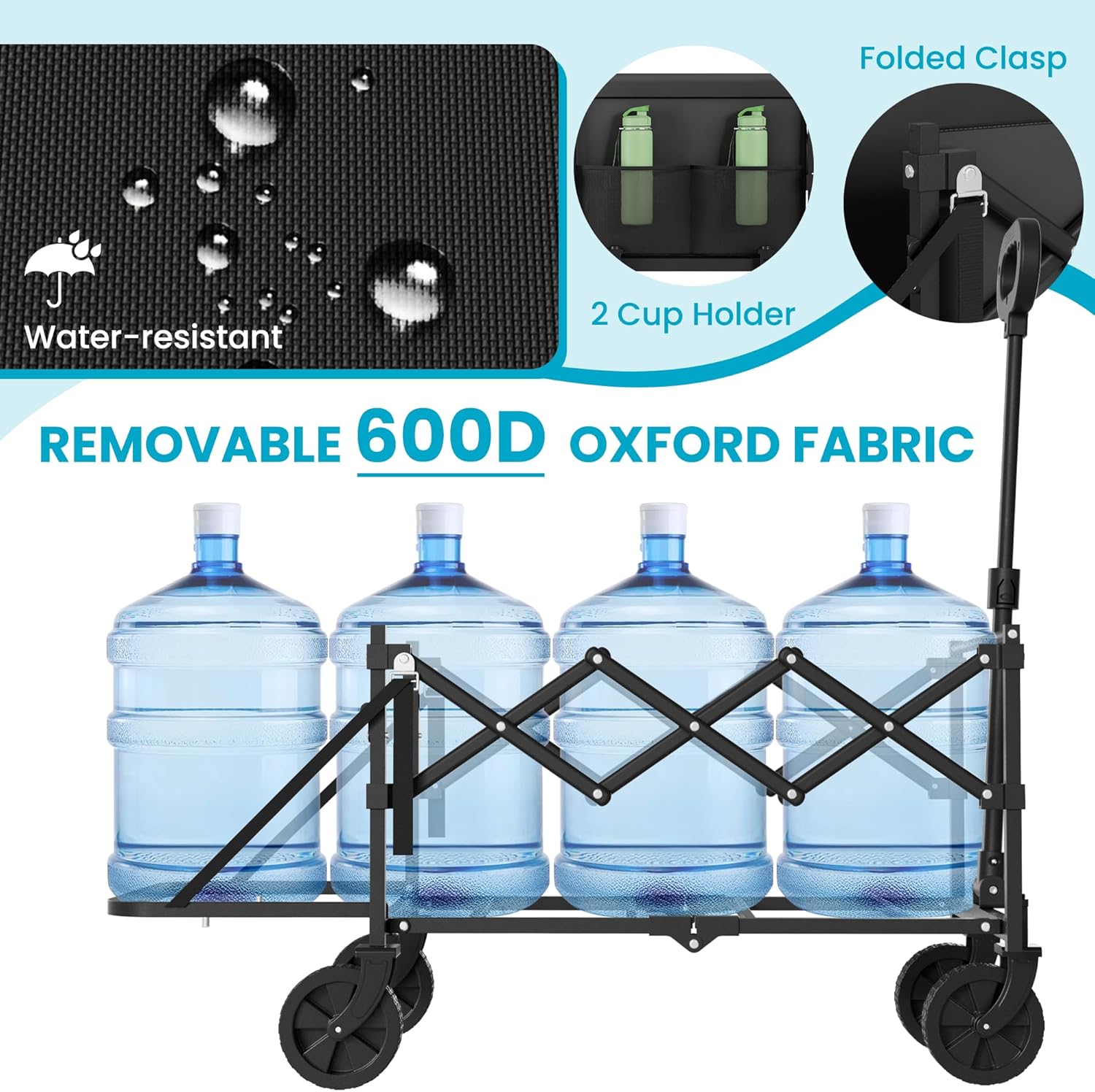 - 【350LBS Load Capacity】Featuring a double-crossing, robust frame, it boasts an impressive load capacity of up to 350lbs. The 600D Oxford fabric is both wear-resistant and waterproof, plus it’s easy to disassemble and clean. Whether you’re traveling or transporting parcels, this wagon is a reliable companion that’s built to go the distance.